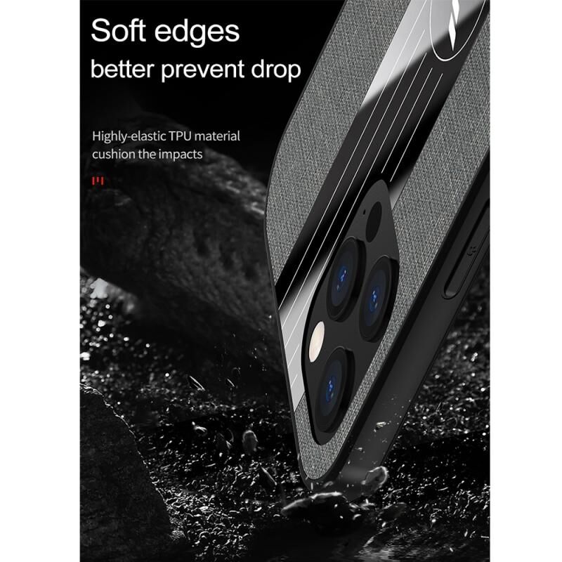 Θήκη προστασίας TPU με υφή ραφής υφάσματος XINLI για iPhone 12 Pro Max, ανθεκτική σε κρούσεις, με βάση δακτυλιδιού (Καφέ) (XINLI)