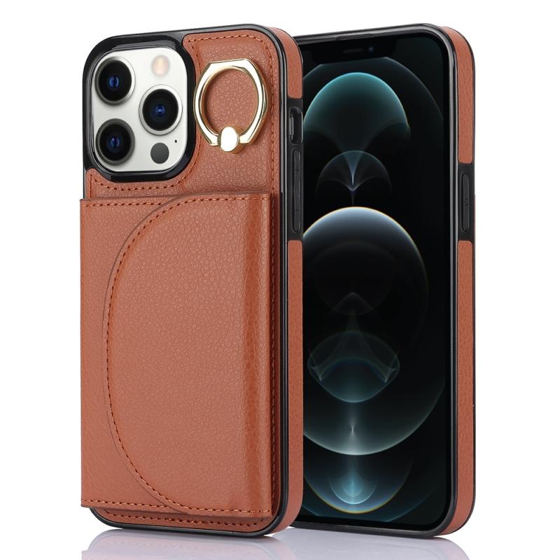 Θήκη κινητού τηλεφώνου με δακτύλιο και θήκη κάρτας για iPhone 12 Pro Max YM007, αίσθηση δέρματος (Χρυσορόδινο)