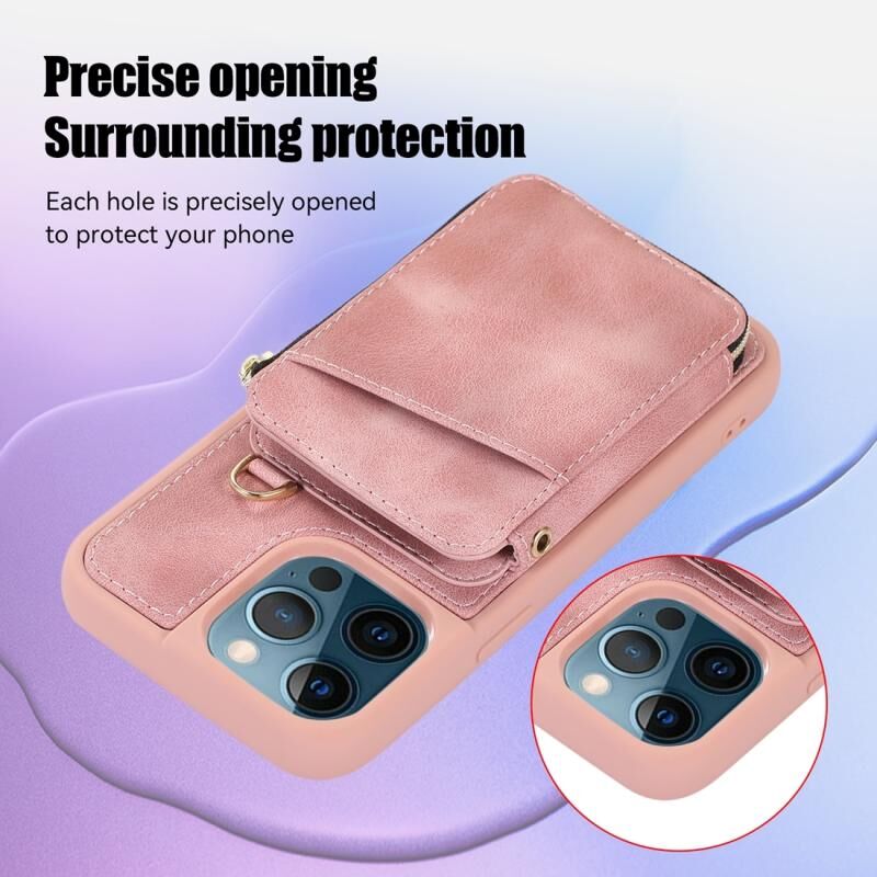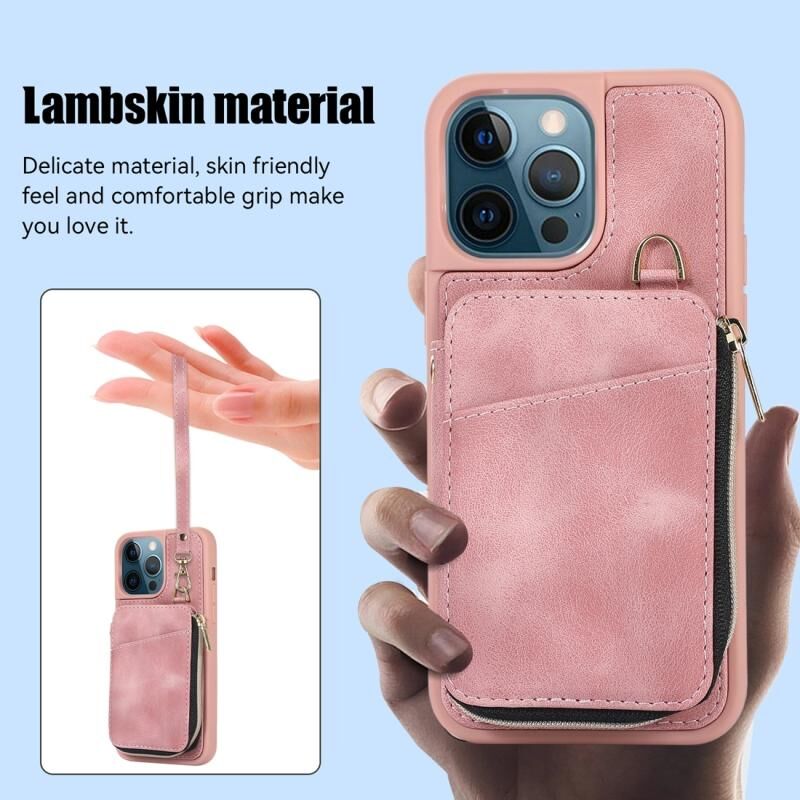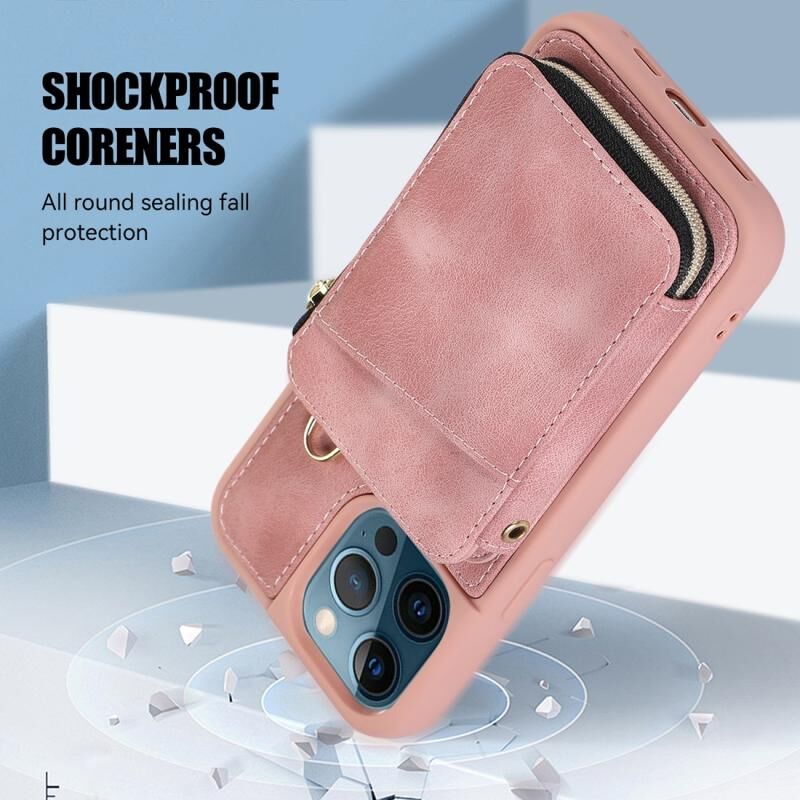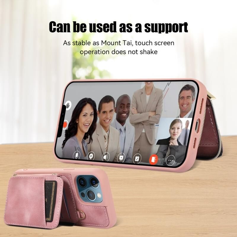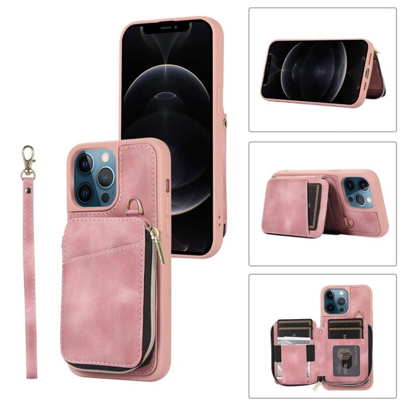 Θήκη κινητού τηλεφώνου με φερμουάρ και θήκη καρτών για iPhone 12 Pro Max (Κόκκινο κρασί)
