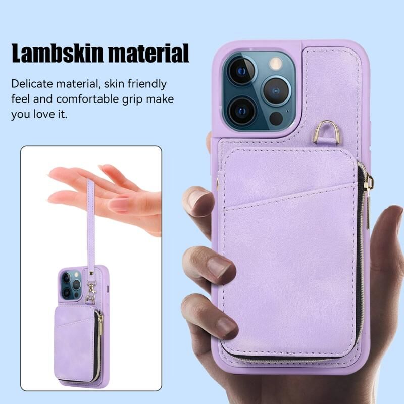 Θήκη κινητού τηλεφώνου με φερμουάρ και θήκη καρτών για iPhone 12 Pro Max (Κόκκινο κρασί)