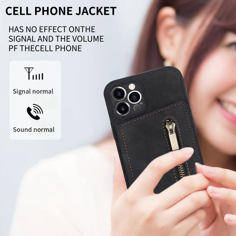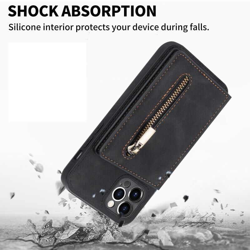Θήκη κινητού τηλεφώνου με φερμουάρ και θήκη καρτών για iPhone 12 Pro Max (Μαύρο)