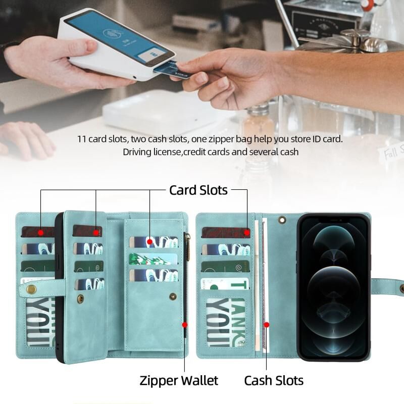 2. Λειτουργία πολλαπλών καρτών & πορτοφολιού: Πολλαπλές θήκες για κάρτες και 1 διαμέρισμα με φερμουάρ για την αποθήκευση των πιστωτικών σας καρτών, χρημάτων ή μικρών σημειώσεων για καθημερινή χρήση.