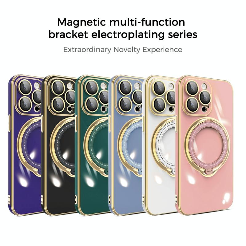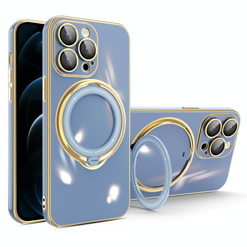 For iPhone 12 Pro Multifunction Electroplating MagSafe Holder Phone Case(Blue)