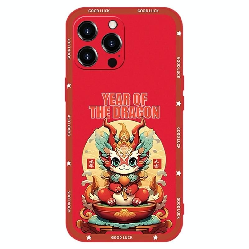 Θήκη σιλικόνης για iPhone 12 Pro, αντικραδασμική, κόκκινη, για την Πρωτοχρονιά (Έτος του Δράκου)