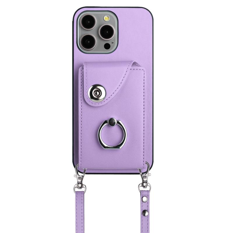 For iPhone 12 Pro Organ Card Bag Ring Holder Phone Case with Long Lanyard(Purple)