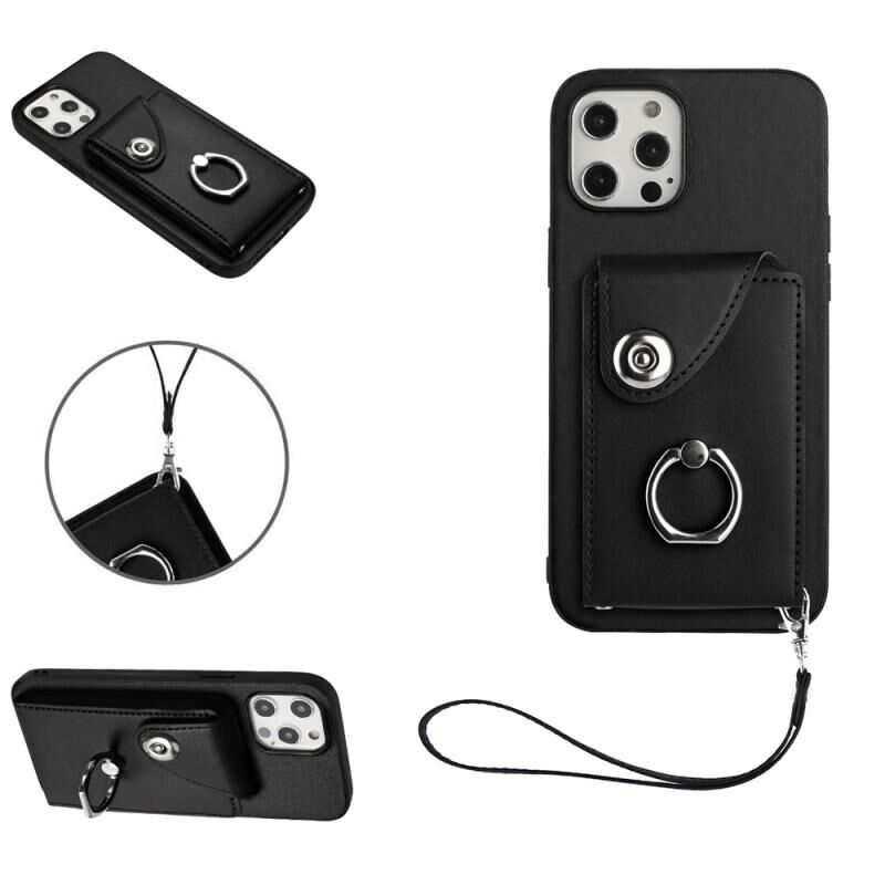 Θήκη κινητού τηλεφώνου για iPhone 12 Pro από PU δέρμα με κάρτα οργάνωσης, δακτύλιο στήριξης και κορδόνι (Μπλε)