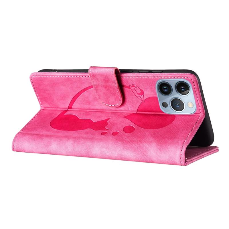 For iPhone 12 Pro Pen Heart Cat Embossed Leather Phone Case(Pink)