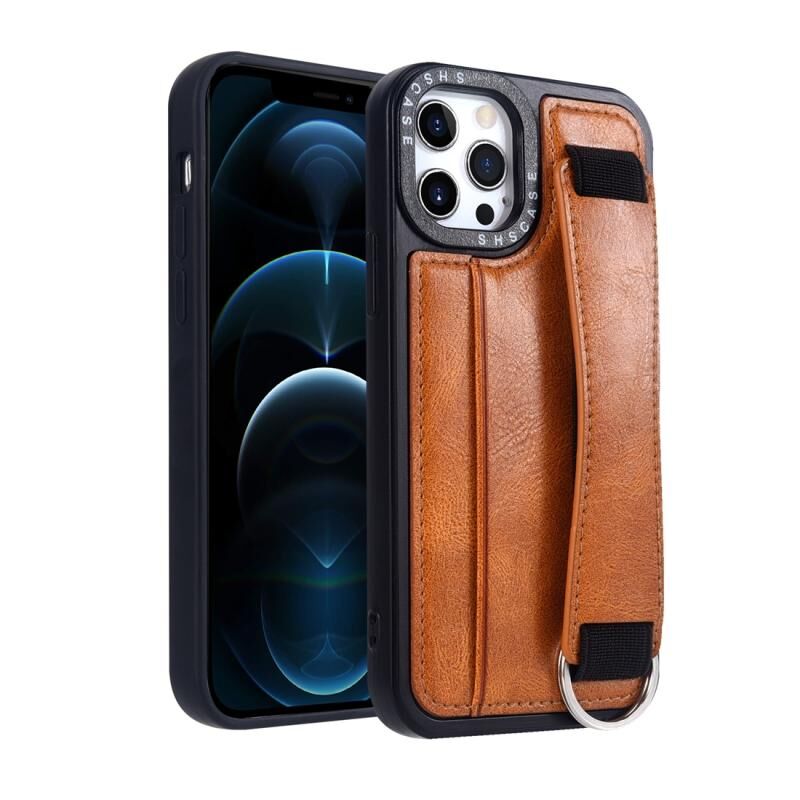 For iPhone 12 Pro Photo Frame Card Wallet Wrist Strap Holder Back Cover Phone Case(Brown)