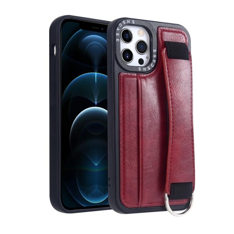 For iPhone 12 Pro Photo Frame Card Wallet Wrist Strap Holder Back Cover Phone Case(Red)