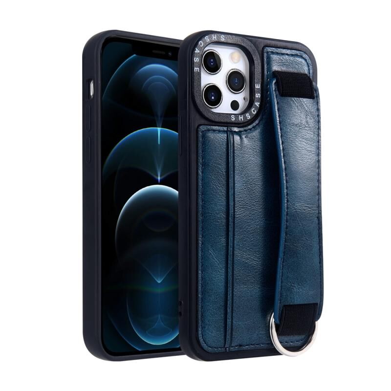 For iPhone 12 Pro Photo Frame Card Wallet Wrist Strap Holder Back Cover Phone Case(Royal Blue)