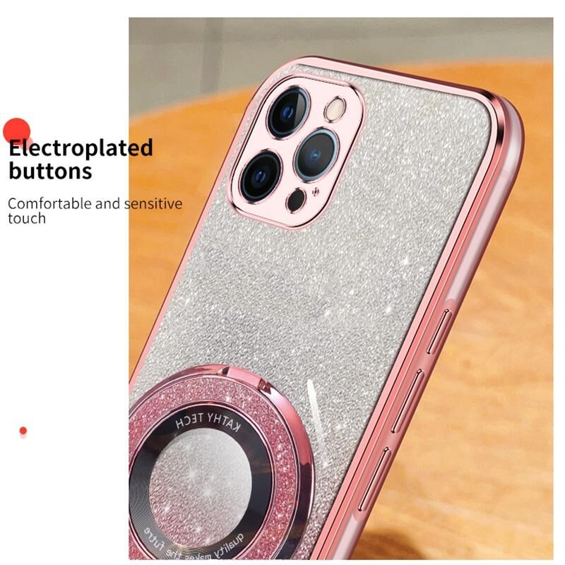 For iPhone 12 Pro Plated Gradient Glitter Round Holder TPU Phone Case(Sierra Blue)