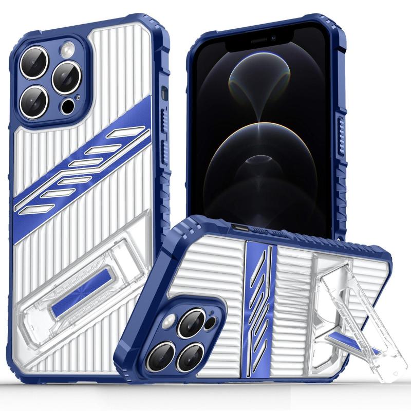 For iPhone 12 Pro Plating Holder PC Hybrid TPU Phone Case(Navy Blue)