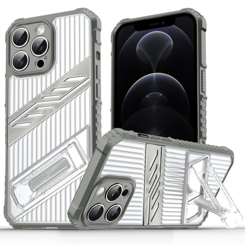For iPhone 12 Pro Plating Holder PC Hybrid TPU Phone Case(Space Gray)