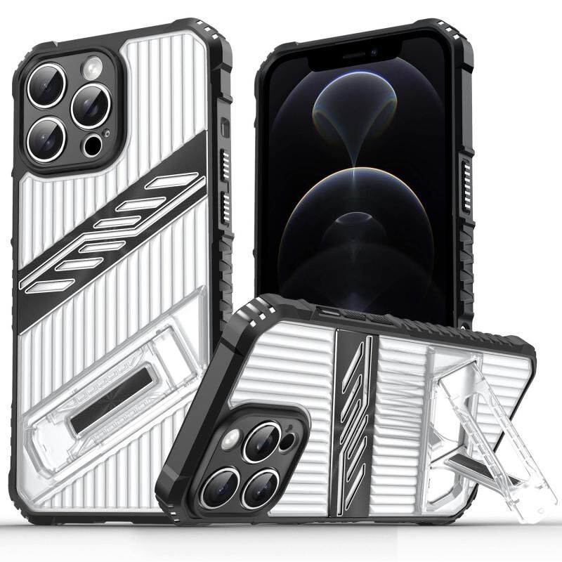 For iPhone 12 Pro Plating Holder PC Hybrid TPU Phone Case(Transparent Black)