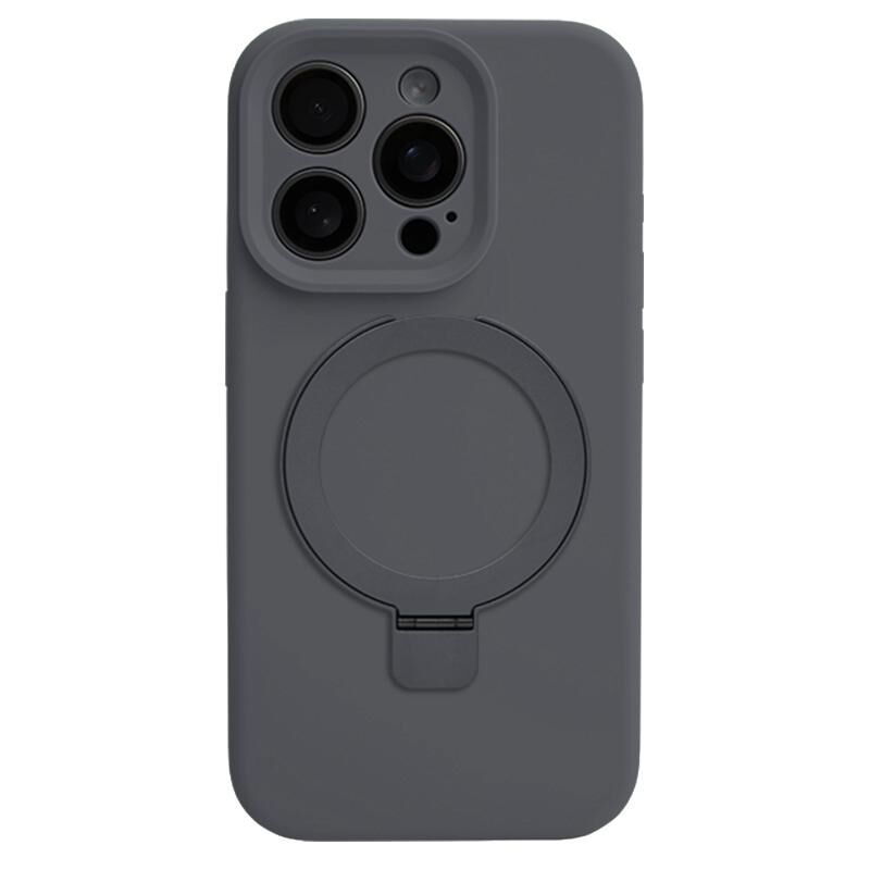 For iPhone 12 Pro Precision Hole Liquid Silicone MagSafe Metal Ring Holder Phone Case(Graphite)