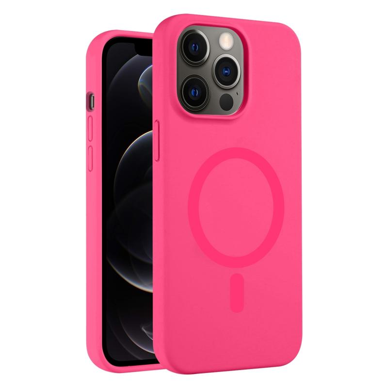 Θήκη Υγρής Σιλικόνης MagSafe για iPhone 12 Pro - Απλό Χρώμα (Ροζ Κόκκινο)
