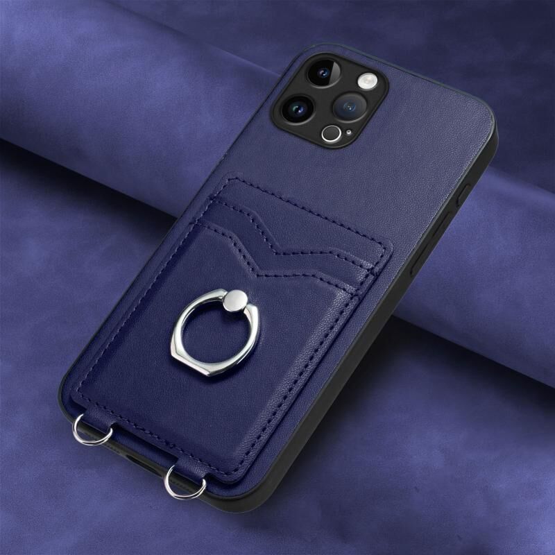 For iPhone 12 Pro R20 Ring Card Holder Phone Case(Blue)