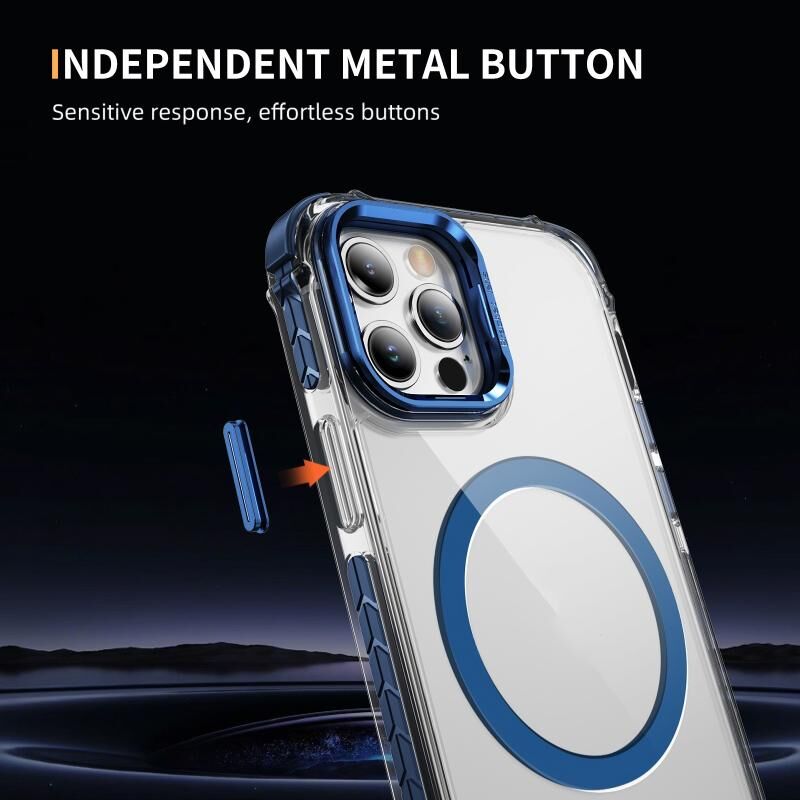 For iPhone 12 Pro Rainbow Series Transparent MagSafe Lens Holder Phone Case(Blue)