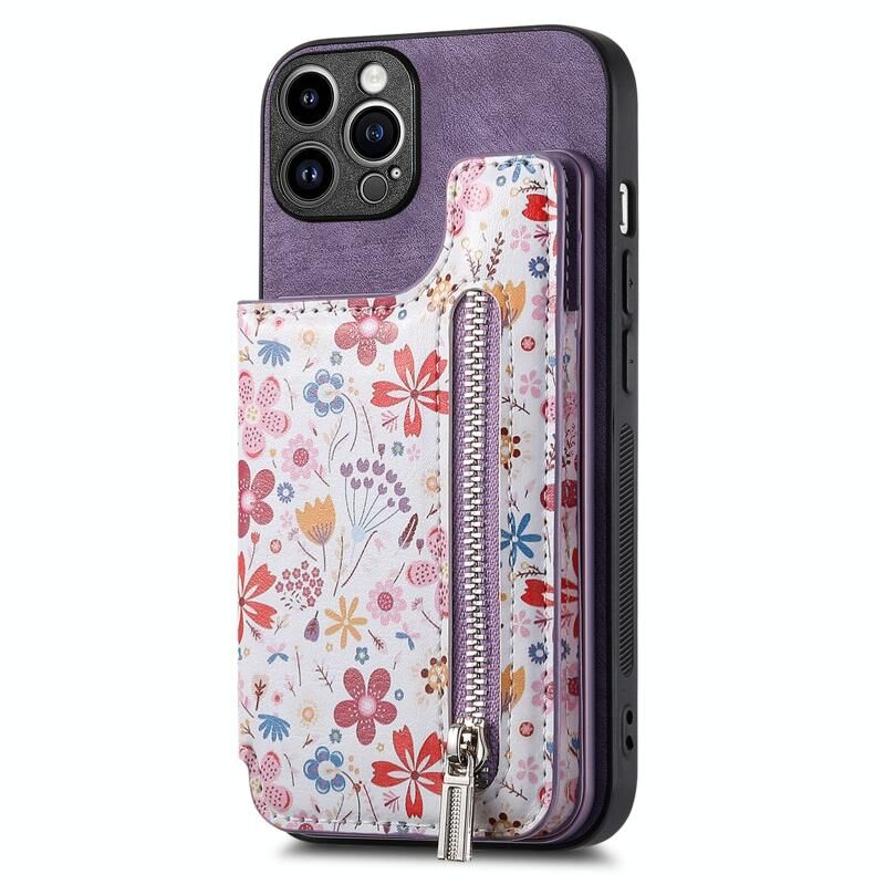 Θήκη κινητού τηλεφώνου για iPhone 12 Pro με σχέδιο vintage, φερμουάρ και θήκη πορτοφολιού (Μωβ)