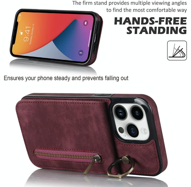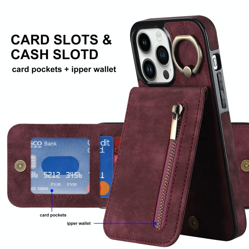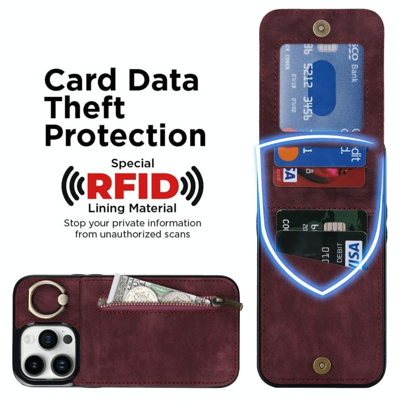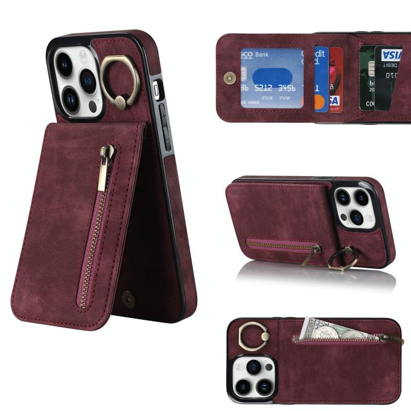 For iPhone 12 Pro Retro Ring and Zipper RFID Card Slot Phone Case(Wine Red)