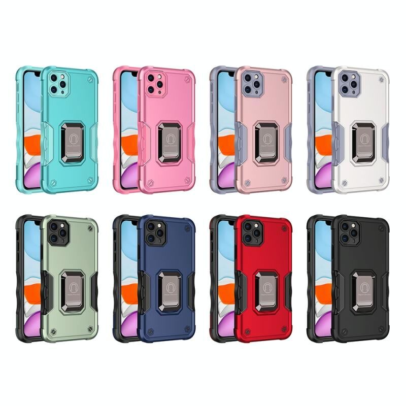 For iPhone 12 Pro Ring Holder Non-slip Armor Phone Case(Pink)