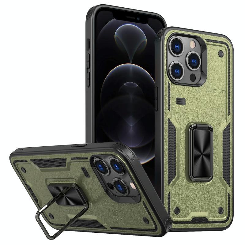 For iPhone 12 Pro Ring Holder PC Hybrid TPU Phone Case(Olive Green)
