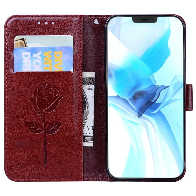 For iPhone 12 Pro Rose Embossed Horizontal Flip PU Leather Case with Holder & Card Slots & Wallet(Brown)