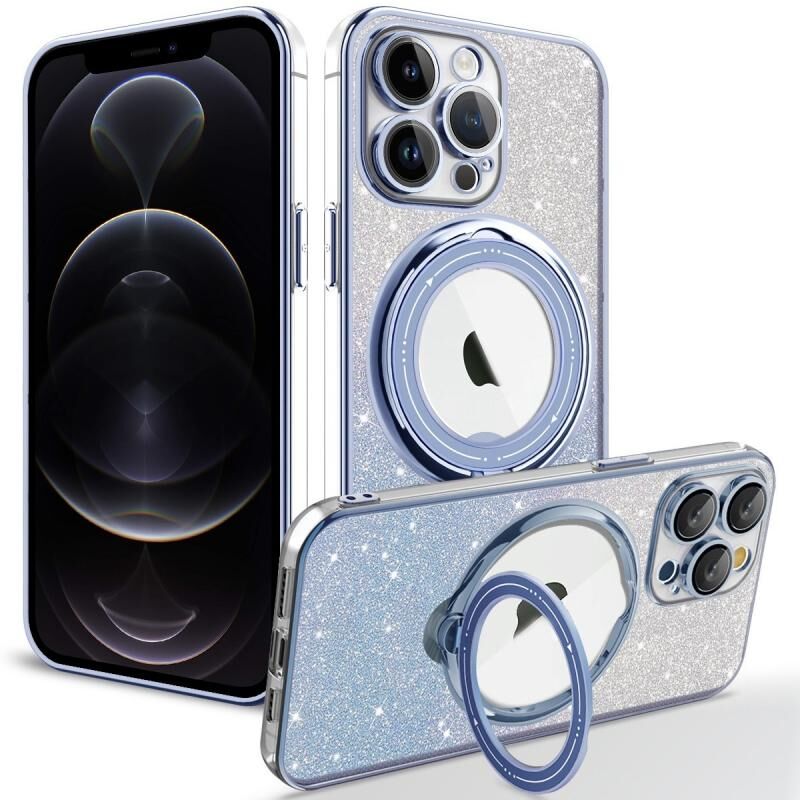 For iPhone 12 Pro Rotation MagSafe Holder Gradient Glitter TPU Phone Case(Sierra Blue)