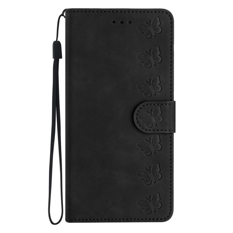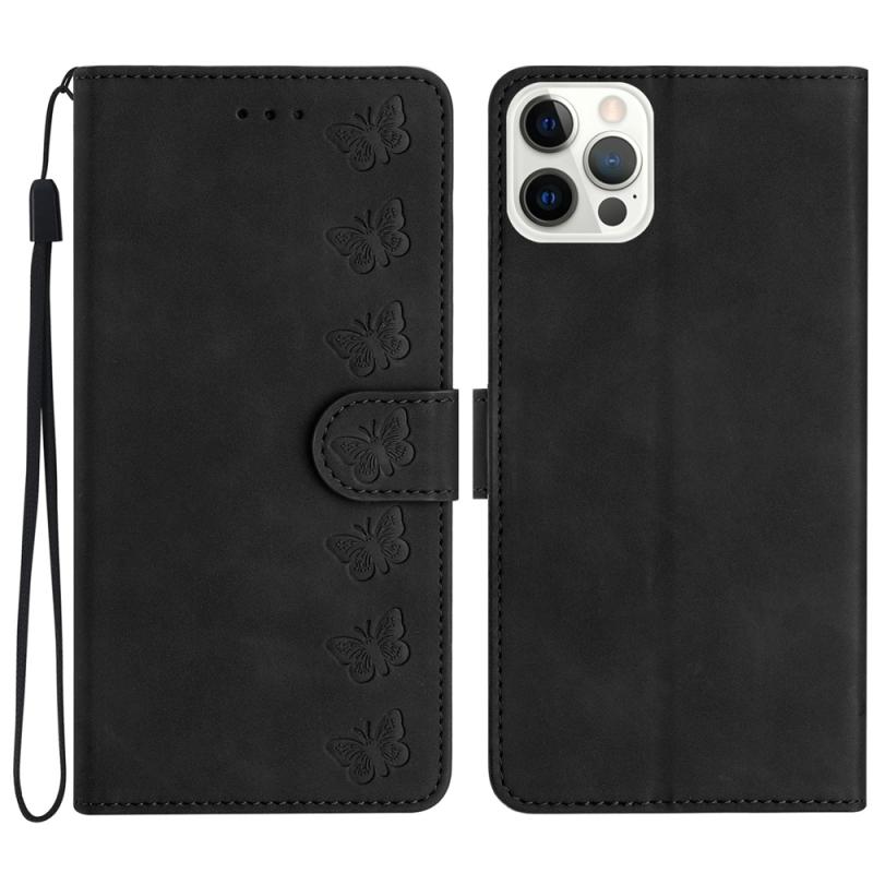 Θήκη τηλεφώνου από δέρμα με ανάγλυφο σχέδιο επτά πεταλούδων για iPhone 12 Pro (Μαύρο)