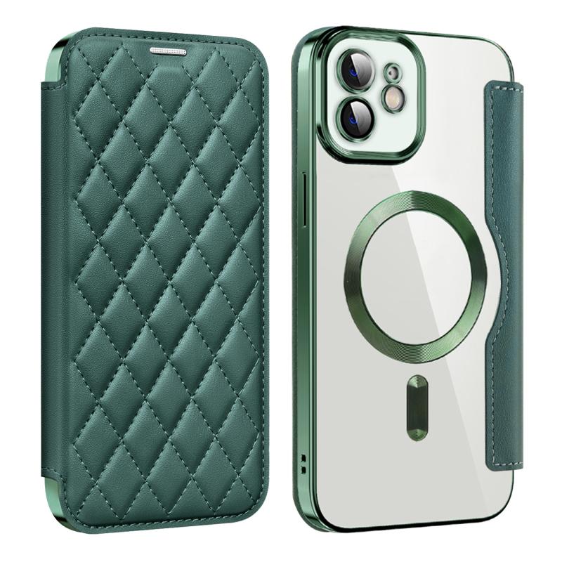 For iPhone 12 Pro Shield Magsafe RFID Anti-theft Rhombus Leather Phone Case(Green)