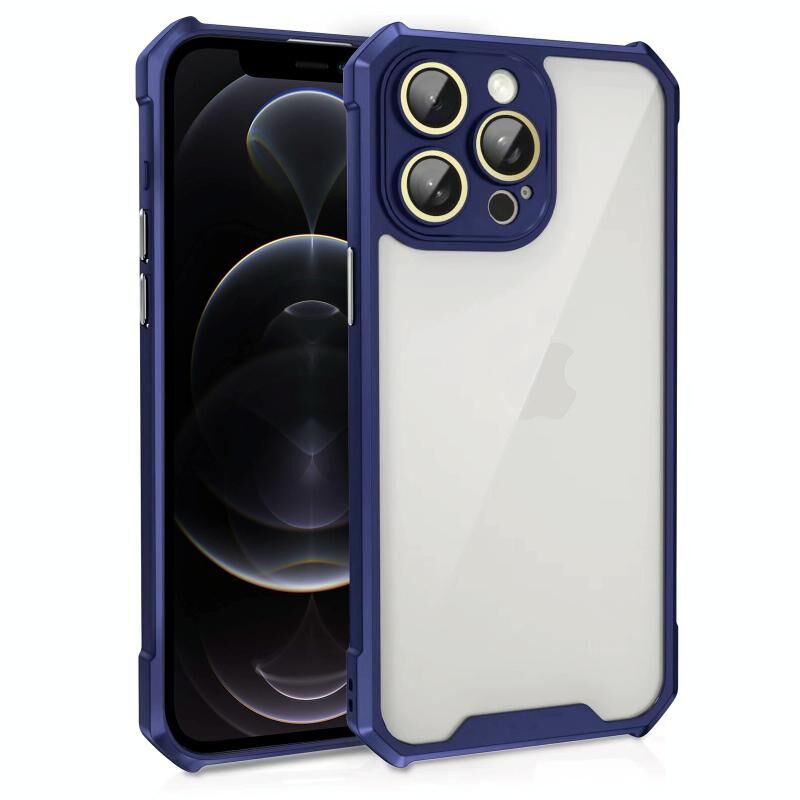 Θήκη κινητού τηλεφώνου για iPhone 12 Pro, ανθεκτική στις κρούσεις, από ακρυλικό υλικό με προστατευτική μεμβράνη φακού (Μπλε)