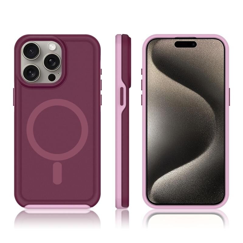 For iPhone 12 Pro Shockproof MagSafe Armor PC Hybrid TPU Phone Case(Wine Red+Light Pink)