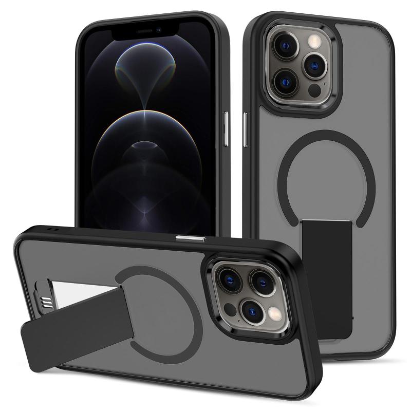 For iPhone 12 Pro Skin Feel Invisible Kickstand MagSafe Phone Case(Black)