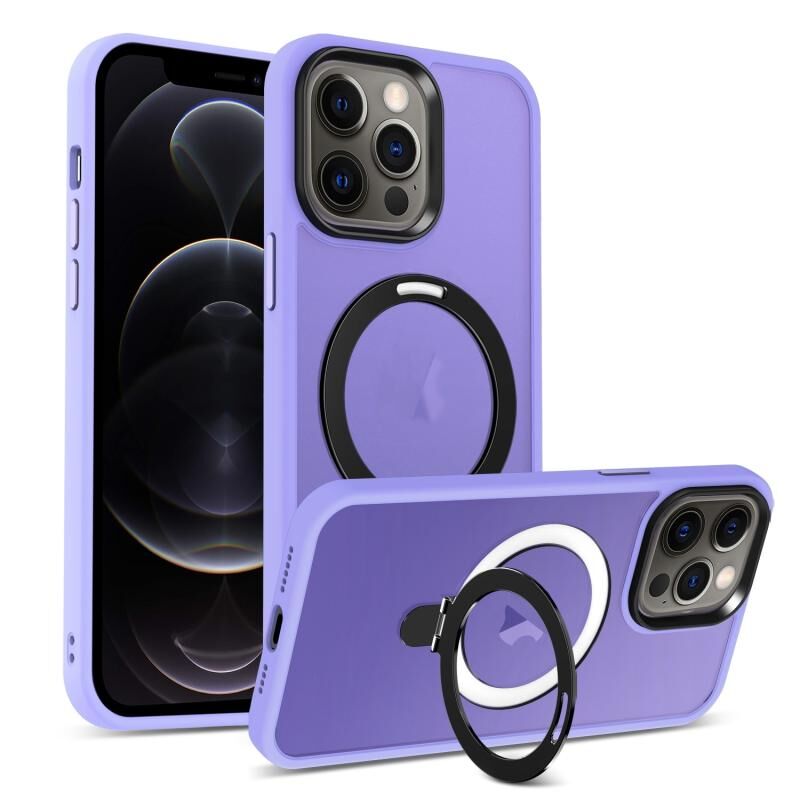 For iPhone 12 Pro Skin-feel MagSafe Holder PC Hybrid TPU Phone Case(Purple)
