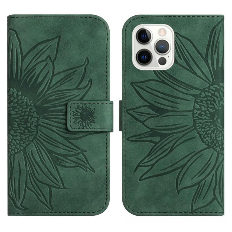 Θήκη τηλεφώνου από δέρμα με σχέδιο ηλιοτρόπιου και αίσθηση δέρματος για iPhone 12 Pro, με λουρί (Κόκκινο)