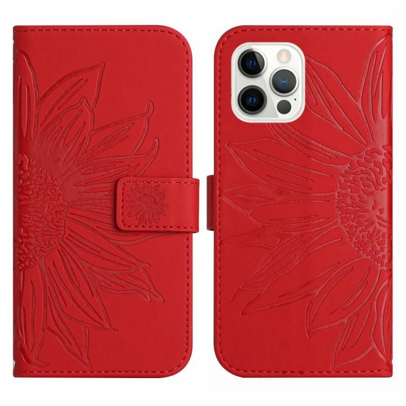 Θήκη τηλεφώνου από δέρμα με σχέδιο ηλιοτρόπιου και αίσθηση δέρματος για iPhone 12 Pro, με λουρί (Κόκκινο)