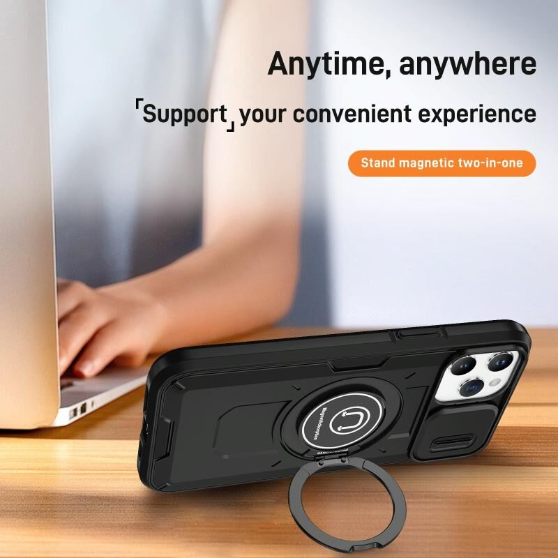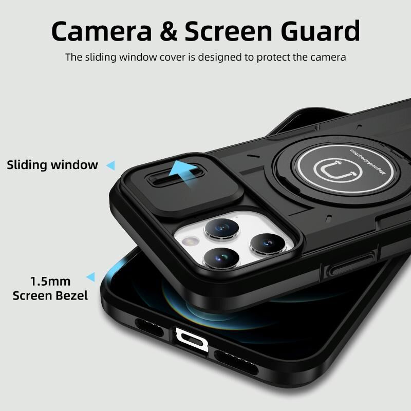 For iPhone 12 Pro Sliding Camshield TPU Hybrid PC Magnetic Holder Phone Case(Black)