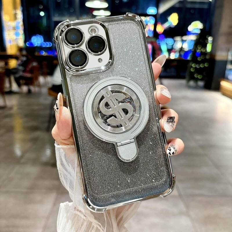 For iPhone 12 Pro Space Gradient Glitter MagSafe Holder Phone Case with Lens Film(Silver)