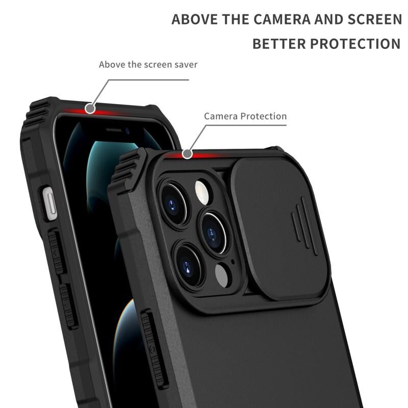 Θήκη τηλεφώνου με στερεοσκοπικό στήριγμα και συρόμενο προστατευτικό κάμερας για iPhone 12 Pro (Ροζ)