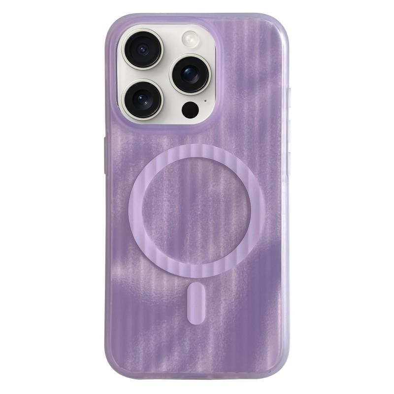 For iPhone 12 Pro Striped Skin Feel Magnetic Magsafe Phone Case(Purple)