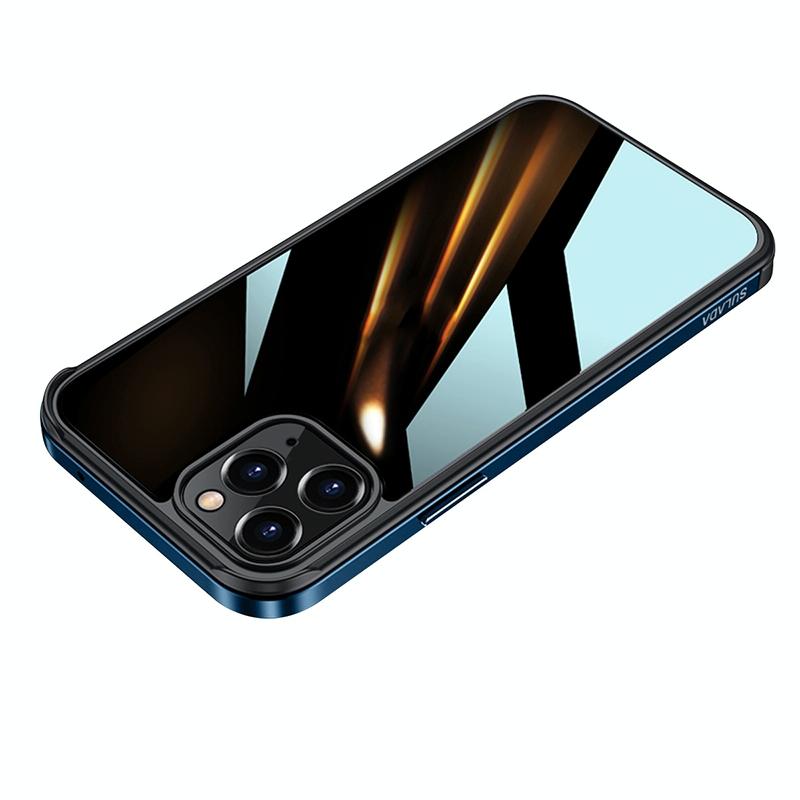 For iPhone 12 Pro SULADA Shockproof Aviation Aluminum Metal Frame + Nano Glass + TPU Protective Case(Dark Blue) (SULADA)