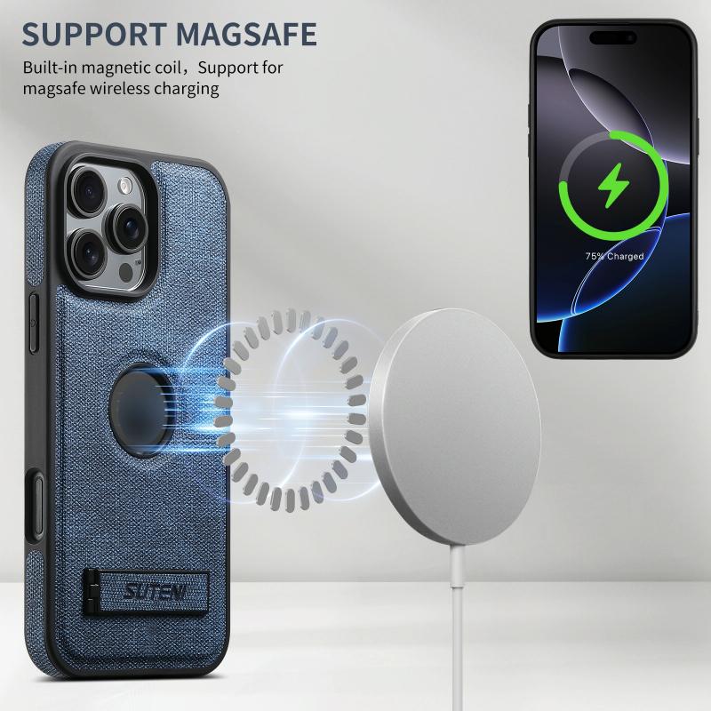 Θήκη τηλεφώνου Suteni G2 για iPhone 12 Pro, από τζιν και δέρμα με MagSafe (Μαύρο) (Suteni)