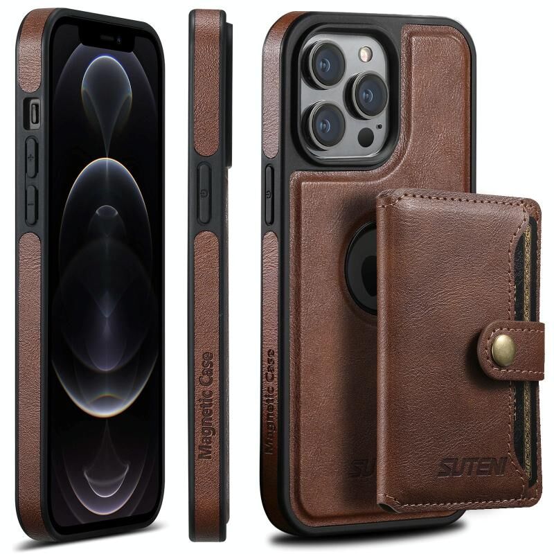 Θήκη τηλεφώνου για iPhone 12 Pro Suteni M1 Oil Wax MagSafe αποσπώμενη οριζόντια θήκη καρτών (Μαύρο) (Suteni)