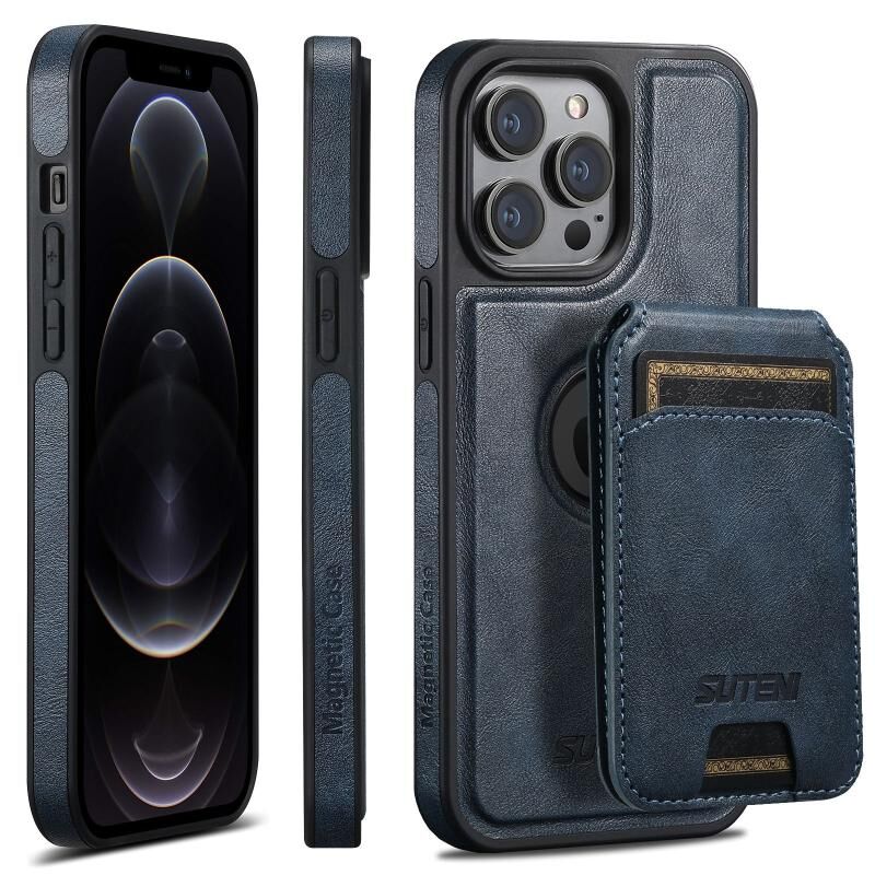 Θήκη τηλεφώνου Suteni M2 Oil Wax MagSafe για iPhone 12 Pro, οριζόντια τσέπη για κάρτες (Μπλε) (Suteni)