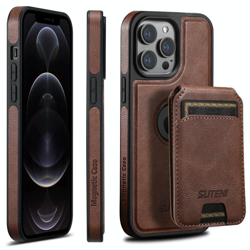 Θήκη τηλεφώνου Suteni M2 Oil Wax MagSafe για iPhone 12 Pro, οριζόντια τσέπη για κάρτες (Μαύρο) (Suteni)