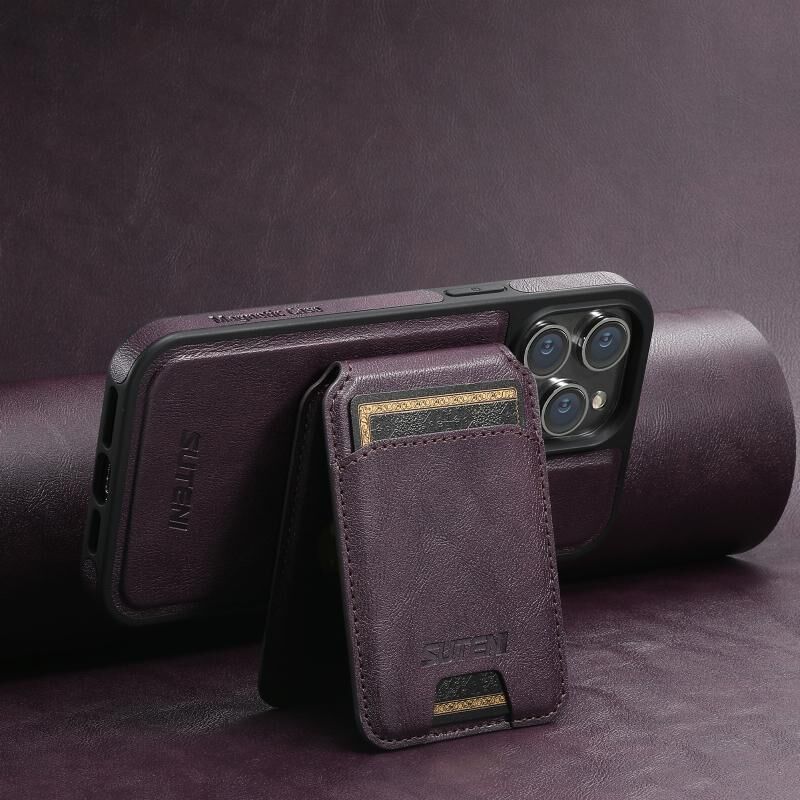 Θήκη τηλεφώνου Suteni M2 Oil Wax MagSafe για iPhone 12 Pro, οριζόντια τσέπη για κάρτες (Μαύρο) (Suteni)