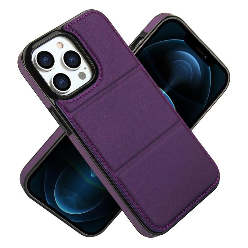 For iPhone 12 Pro Tri-fold Holder Leather Phone Case with Card Slot(Dark Purple)
