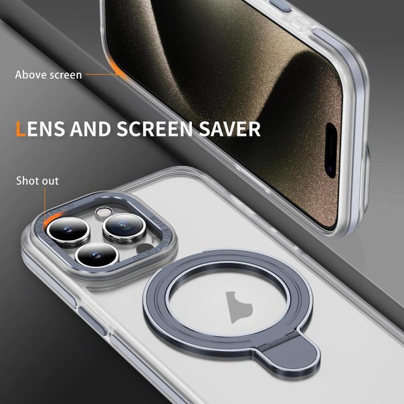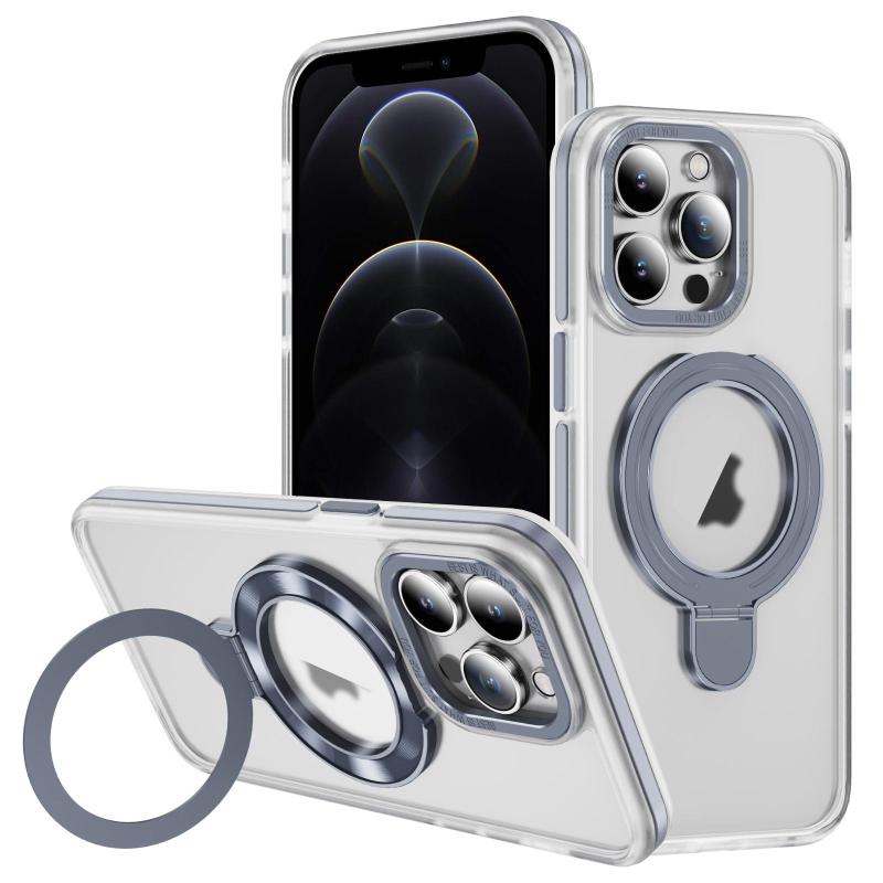 For iPhone 12 Pro Two Color TPU Hybrid Acrylic MagSafe Magnetic Holder Phone Case(Grey)