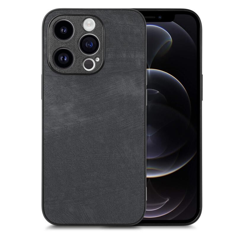 For iPhone 12 Pro Vintage Leather PC Back Cover Phone Case(Black)