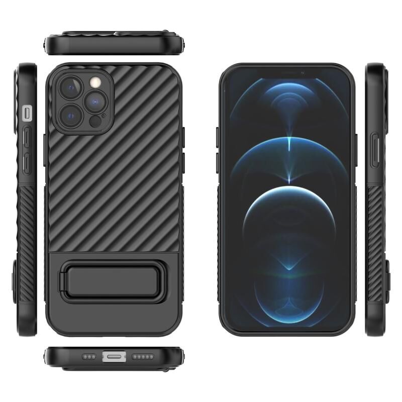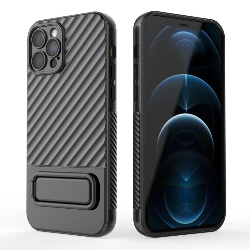 Θήκη τηλεφώνου TPU με κυματιστή υφή για iPhone 12 Pro με προστατευτική μεμβράνη φακού (Μαύρο)